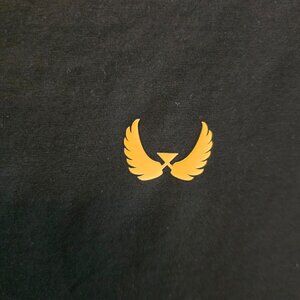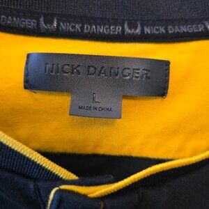 NICK DANGER SIZE LARGE BLACK GOLD MENS TSHIRT SHORT SLEEVE HENLEY TRIM FLEX FIT