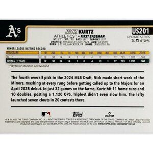 2025 TOPPS UPDATE #US201 NICK KURTZ ROOKIE BASEBALL CARD!