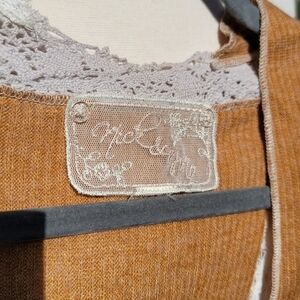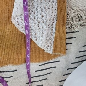 NICK & MO GOLDEN MUSTARD YELLOW RIBBED CARDIGAN W LACE & CROCHET LACE, sz M/L