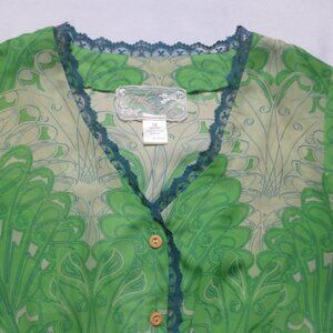 NICK & MO womens BLOUSE green ANTHROPOLOGIE sheer LACE boho VINTAGE SIZE M