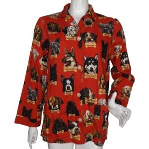 NICK & NORA Pajama Top, S, Dogs, Milk Bone, Long sleeves, Vintage, Pockets, Red