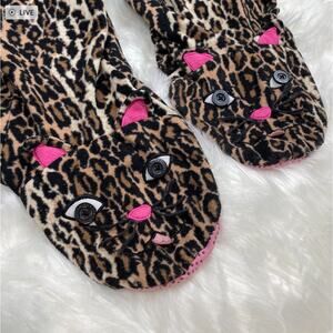 Nick & Nora extra large fleece one-piece cheetah print footie pajamas. Full zip up the front. Union suit. Cute cat face details on the feet. Good pre-owned condition. I have a