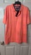 Coral polo with subtle white pattern. Classic collar and button front. Perfect for everyday style.