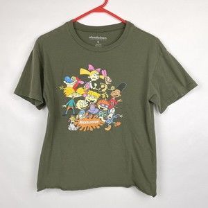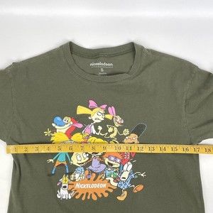 NICKELODEON Women's S Green Graphic T-Shirt 2019 Rugrats Hey Arnold Ren Stimpy.