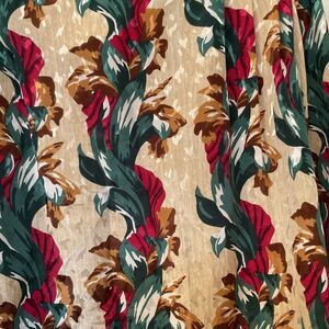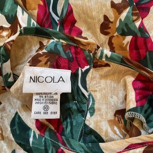 NICOLA Floral Print Blouse Pullover Long Sleeves Silky Beige Green Red, Size 10