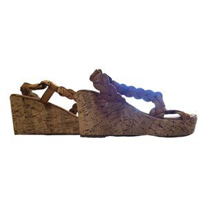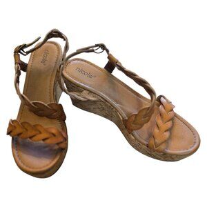 NICOLE Brown Braided Cork Wedge Platform Sandals sz 8