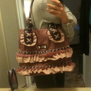 nicole lee handbag..sooo beautifull, got a lot of compliment when im using this..still in excelent condition ( i wiped and clean all my handbag every month with leather cleaner) just one tiny rip on the back side of bag, but its not noticable at all, its the lining..u can sew them and its done..(too lazy to do it)