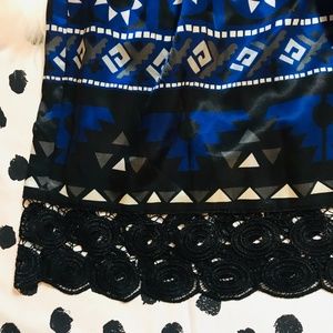 Black & Blue Geometric Design with Scalloped Lace Trim