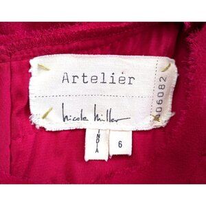 NICOLE MILLER ARTELIER 100% Silk Magenta Pink Ruffle Tiered Halter Tank Dress Coquette Size 6
