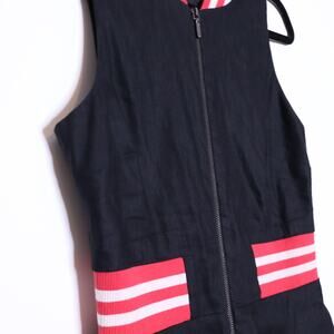 NICOLE MILLER COLLECTION Linen Slouch Dress Black Zip Front Women's 6