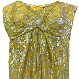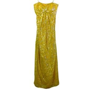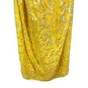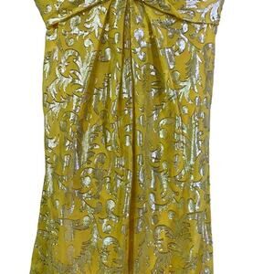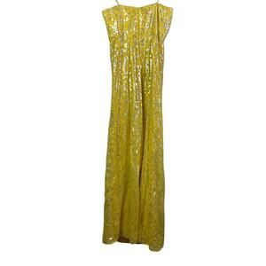 NICOLE MILLER Dress Strapless Silk Chiffon Gold Lurex Maxi Hidden Zipper Formal