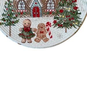 Add festive charm to your holiday table with this Nicole Miller Home Set of 4 Gingerbread Placemats. Brand new and beautifully designed, these round 15" placemats feature a cheerful Christmas gingerbread motif, perfect for holiday dinners and seasonal décor. Made of durable polyester and easy to spot clean, this set combines style and function for effortless entertaining. A must-have Christmas table accent for anyone who loves Nicole Miller’s signature holiday designs!