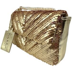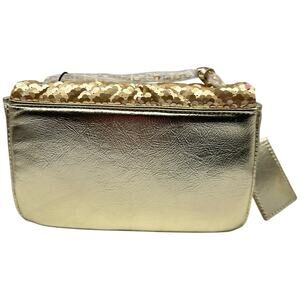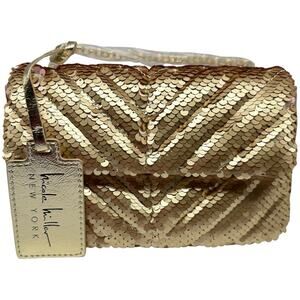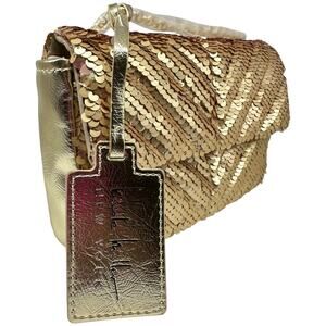 NICOLE MILLER Metallic Gold Sequin Evening Bag Purse Handbag Chain Strap NWT $50