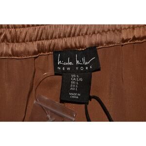 NICOLE MILLER NEW $225 Wide Leg Satin Cargo Pants Copper Brown Large