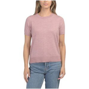 NICOLE MILLER NEW YORK Merino Wool Short Sleeve Faux Button Pullover Sweater