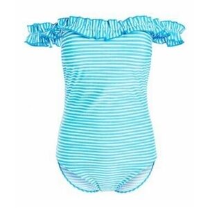 NICOLE MILLER One Piece Stripe Off Shoulder Ruffle Swim Bathing Suit size 2X