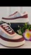 Step into sporty-chic style with these burgundy, white, and pink sneakers in a versatile woven design.