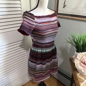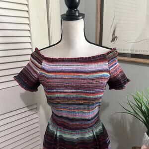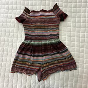 NICOLE MILLER Romper Womens 10 Rainbow Stroped Smocked Off Shoulder Soft Girl