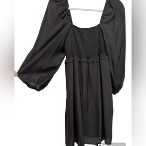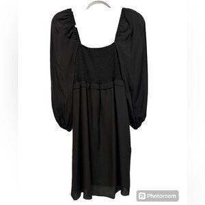 NICOLE MILLER Smocked Square Neckline Long Sleeve Mini Black Dress Size Small