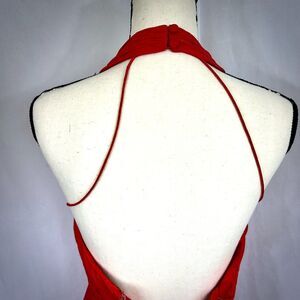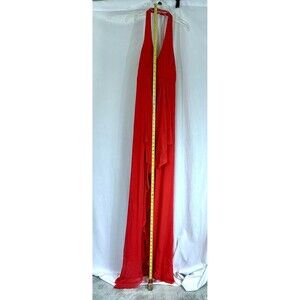 NICOLE MILLER Tangerine Halter Formal Silk Evening Gown Dress w/Train - Sz 2
