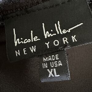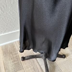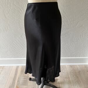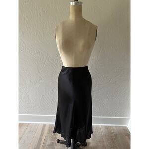 NICOLE MILLER | Womens Black Satin Lettuce Hem Midi Skirt NEW Size XL Boho Luxe