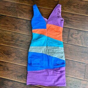 NICOLE MILLER Y2K Colorblock Sleeveless Ruched Bodycon Dress