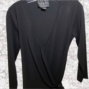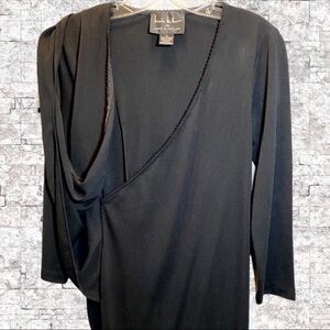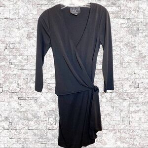 NICOLE MILLER x LORD & TAYLOR Classic Black Faux Wrap Dress, Small.
