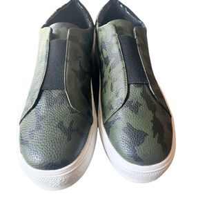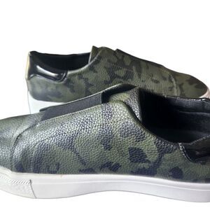 NICOLE Miller Leather Green and Black Camoflauge Slip on Sneakers Size 10