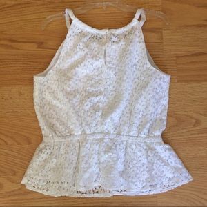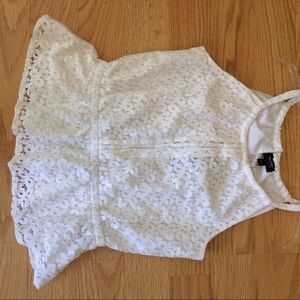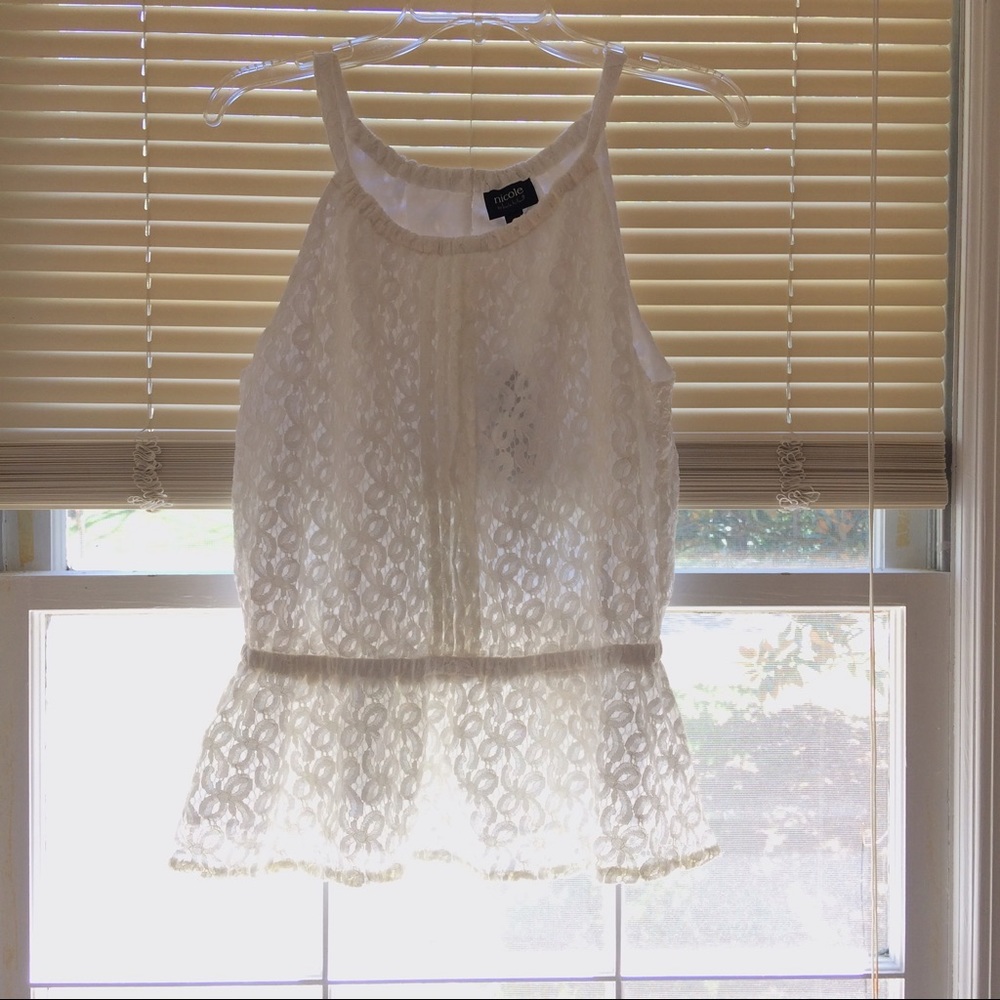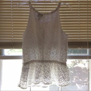 A white frilly tank top. Beautiful lace for a simple look! NEVER WORN BEFORE! Comment down below if you have ANY questions!