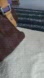 Chic dark brown satchel with sturdy tan handles. Features metallic accents. Has some peeling on sides and handles, has a gorgeous rugged look, gorgeous handbag with jeans.