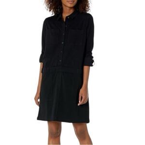 NIC+ZOE Black Convertible Sleeve Minimalist Pocket Shirt Dress Size Medium