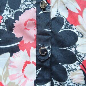 NIC+ZOE Black Pink White Floral Print Button Front Blouse Long Sleeve Size L