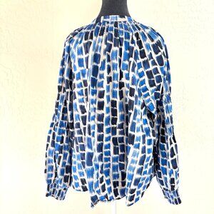 NIC+ZOE blouse, NIC and ZOE top, women’s 3X blouse, plus size cotton shirt, blue abstract blouse, geometric print top, button front blouse, cotton long sleeve shirt, boho workwear blouse, casual office top, resort wear blouse, vacation top, breathable cotton blouse, NIC+ZOE plus top