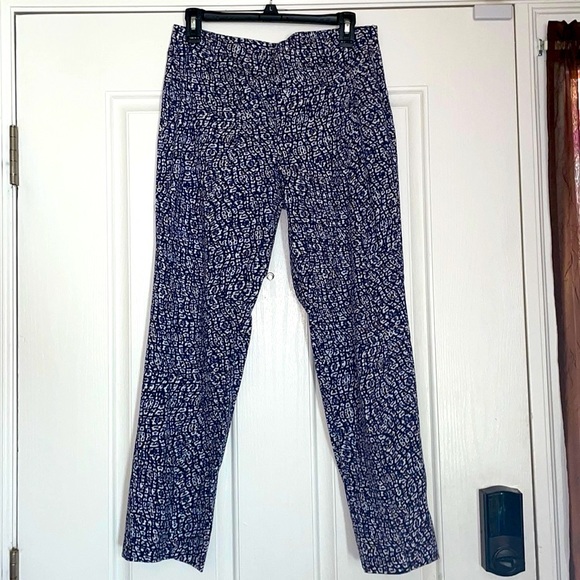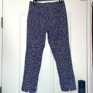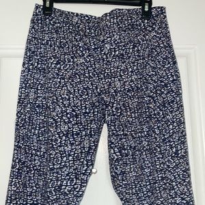 Stylish track pants with intricate blue and white pattern. Perfect for casual wear. Comfortable and trendy.