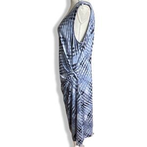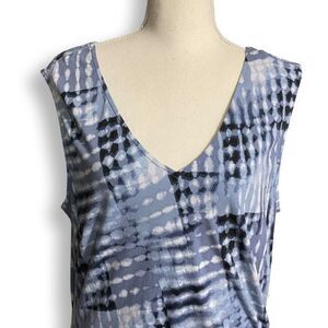 NIC+ZOE Cross Over Twist Dress, Blue & White Tie-dye Effect Print, Size XL