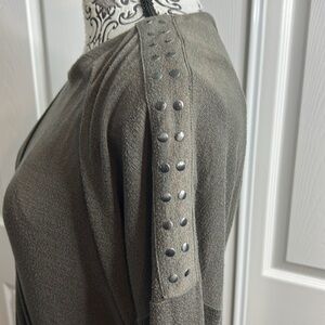 NIC+ZOE Gray Asymmetrical Ruched Blouse L