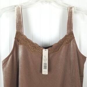 NIC+ZOE Lace Trim Velvet Cami Tank top NWT Womens Size Large VNeck Thick Neutral