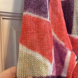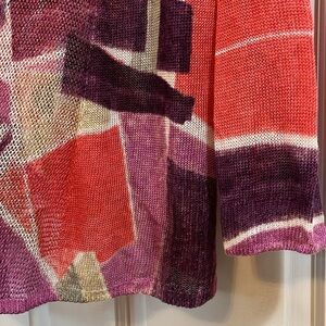 Tags: abstract creme brown purple pink open knit lightweight summery transitional wear beach beachy coastal colorful bright airy flowy layering knitwear