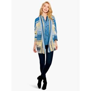 NIC+ZOE Santa Monica Striped Cardigan Sweater, Size XS, Marled Blue Green Striped Print
