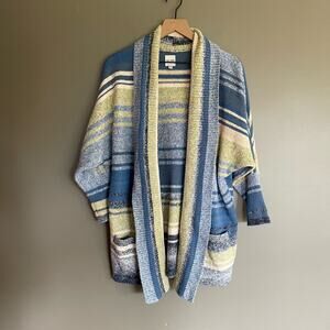 NIC+ZOE Santa Monica Striped Cardigan Size XS Blue Green Striped Sweater Comfy