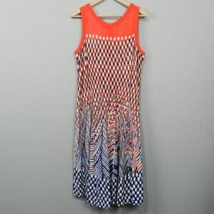 NIC + ZOE Sweater Knit Fit and Flare Dress Size XL Coral Blue Geometric