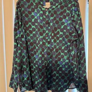NIC+ZOE Teal and Navy Polka Dot Blouse