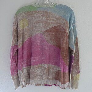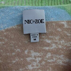 NIC+ZOE V-Neck Sweater Pastel Pink Green Brown Mosaic Women M