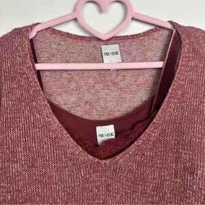 NIC+ZOE V-Neck Sweater with Velvet Cami in Dusty Rose Size Medium