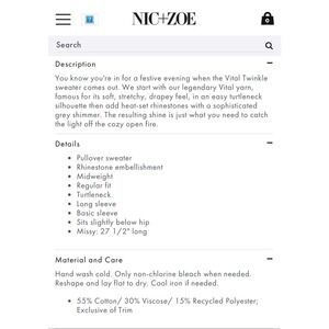 New NIC+ZOE Twinkle Mock Neck Sweater. Perfect condition.