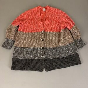NIC+ZOE Woman's Cardigan 2X Color Block Cotton Blend Knit Button Front Cozy