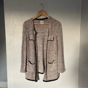 Stylish NIC+ZOE cardigan with a cream and black pattern. Perfect for layering and adding elegance to any outfit.