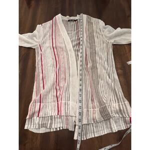 NIC+ZOE Women's Festival Linen Blend White Red Stripe Gauzy 3/4 Sleeve Cardigan PP