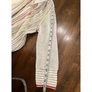 NIC+ZOE Women's Festival Linen Blend White Red Stripe 3/4 Sleeve Cardigan PP