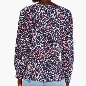 NIC+ZOE puff long sleeve Glowing Sunset 2023 print rayon pullover top size S